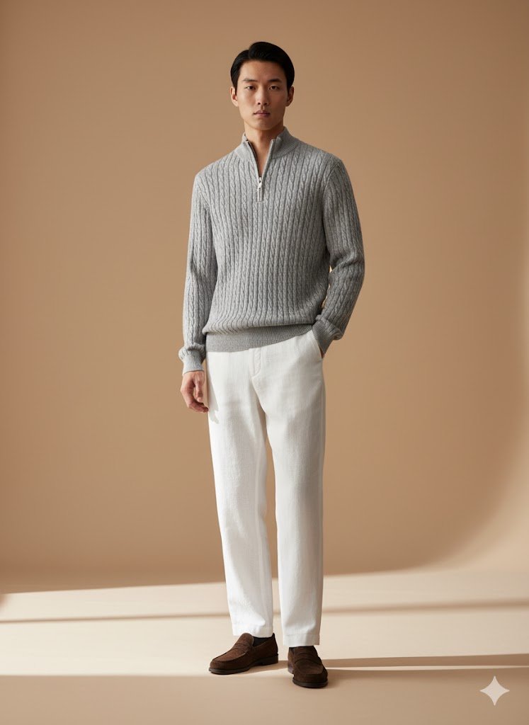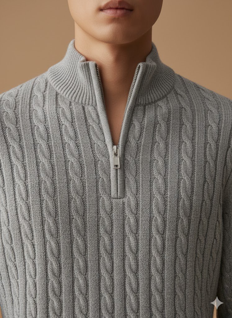 Cable Knit Quarter Zip – Grey