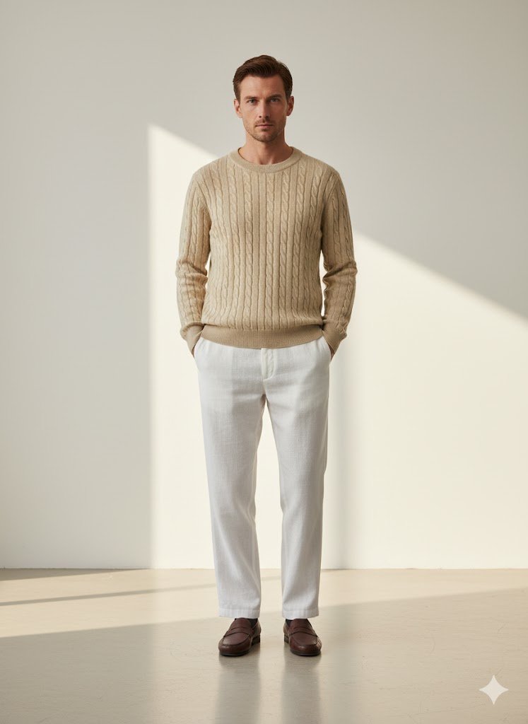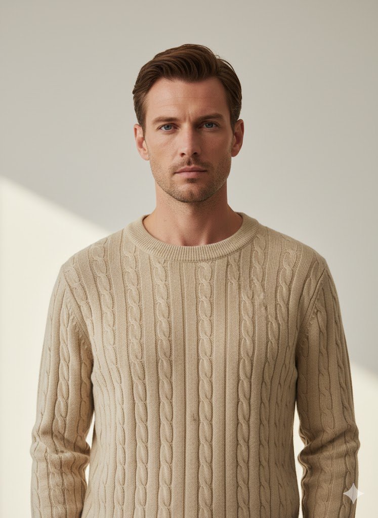 Cable Knit Round Neck – Beige