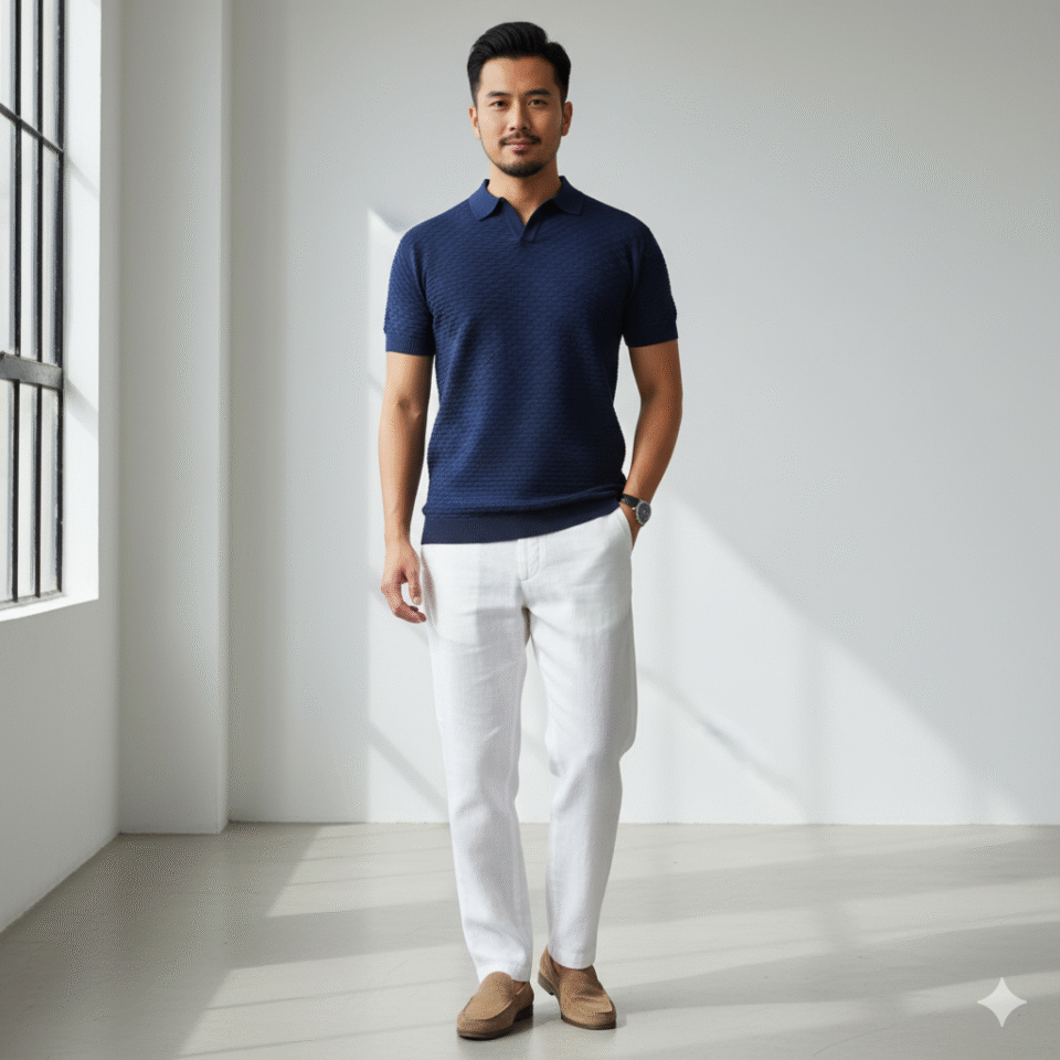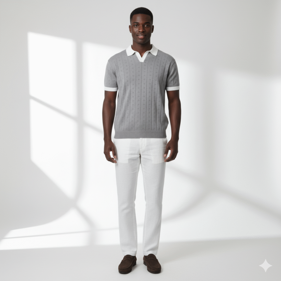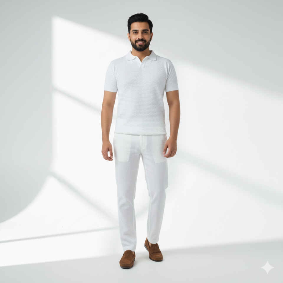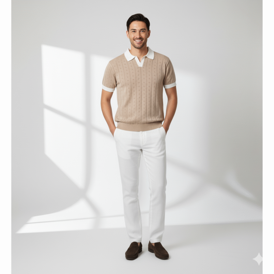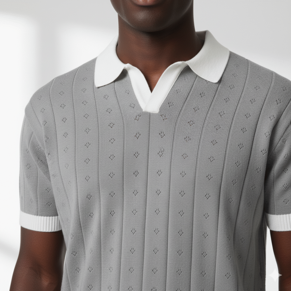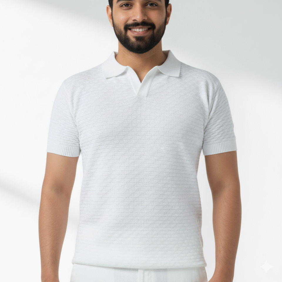 Knitted Vintage Short Sleeve Polo Shirt – White