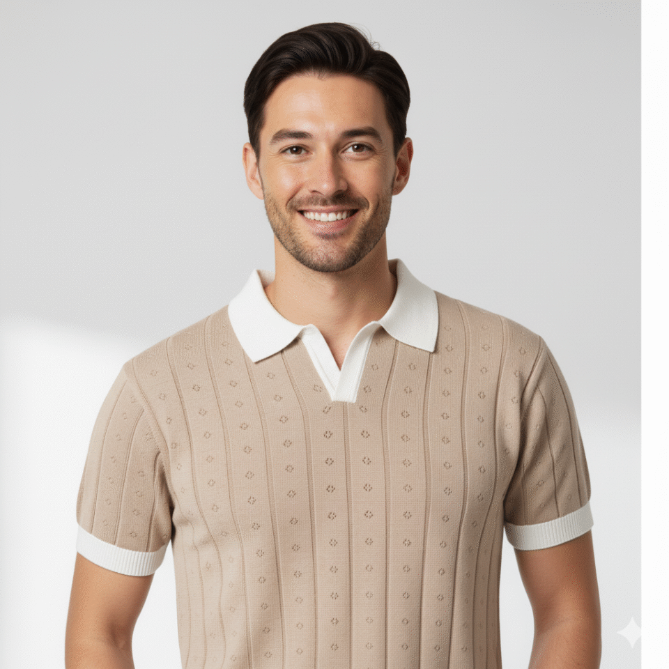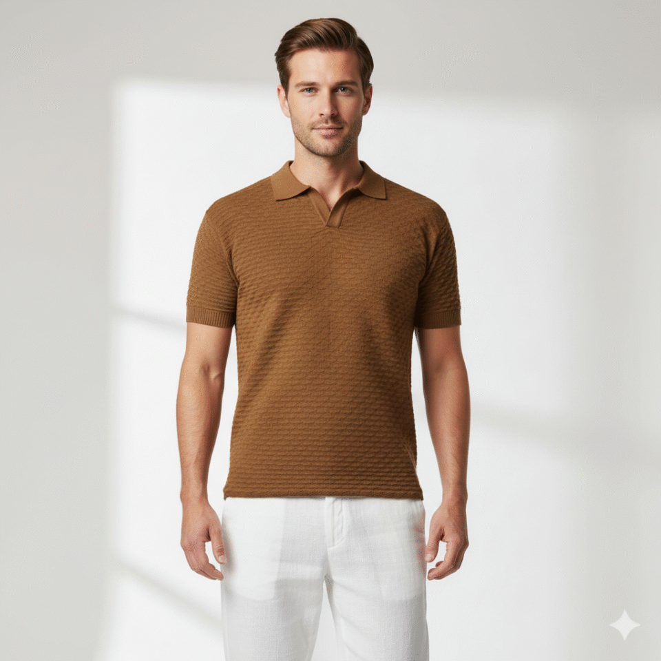 Knitted Vintage Short Sleeve Polo Shirt – Coffee Brown