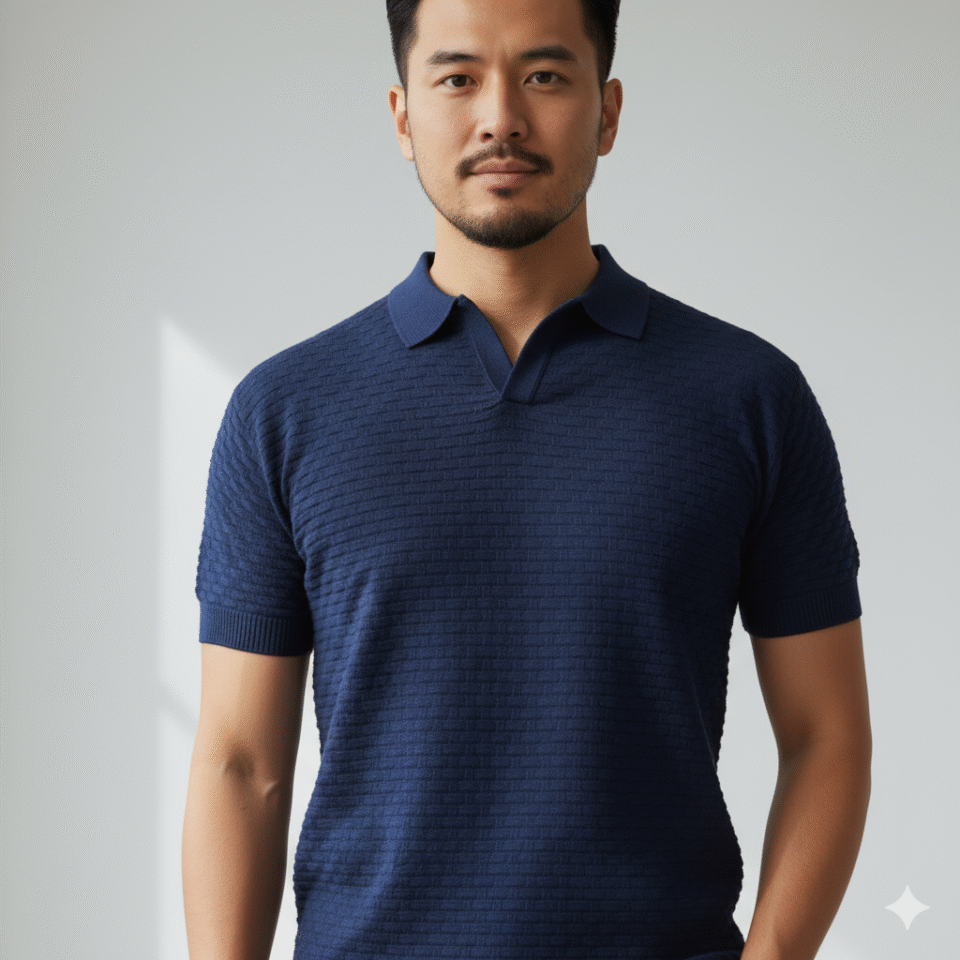 Knitted Vintage Short Sleeve Polo Shirt – Navy